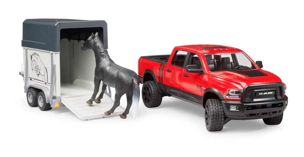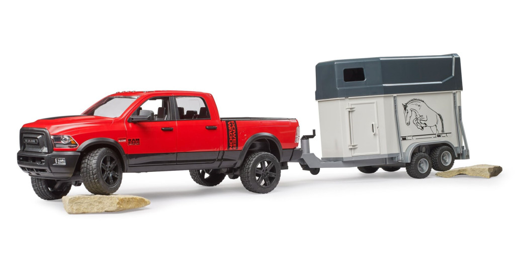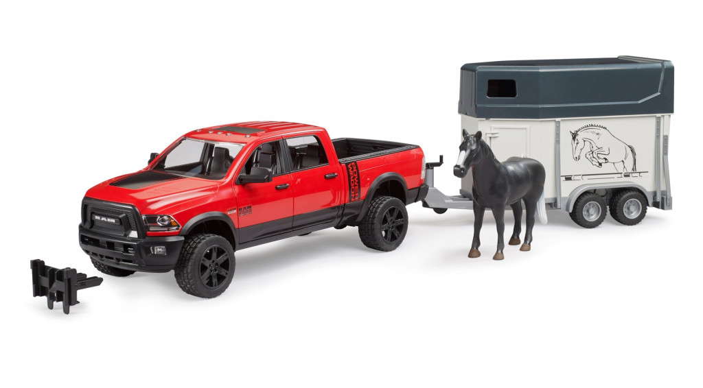 RAM 2500 Power Wagon terepjáró, lószállító pótkocsival és lóval - Bruder 2501