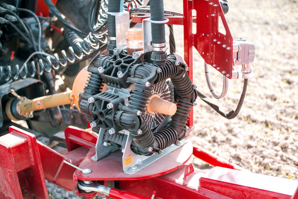 A pódiumon kapott helyet a közvetett száraz szintjelző, és az üzemi nyomást jelző manométer, mely könnyen leolvasható a traktor fülkéjéből permetezés közben és a feltöltés során is. A permetlé továbbításáért egy 260 liter/perc teljesítményű dugattyús membrán szivattyú felel, amit a vonórúdra szereltünk fel, biztosítva ezzel a szivattyú megfelelő hűtését és könnyű hozzáférhetőségét karbantartáskor. Rendelje meg nagyobb, akár 300 liter/perc teljesítményű szivattyúval ha szélesebb munkaszélességben dolgozna!